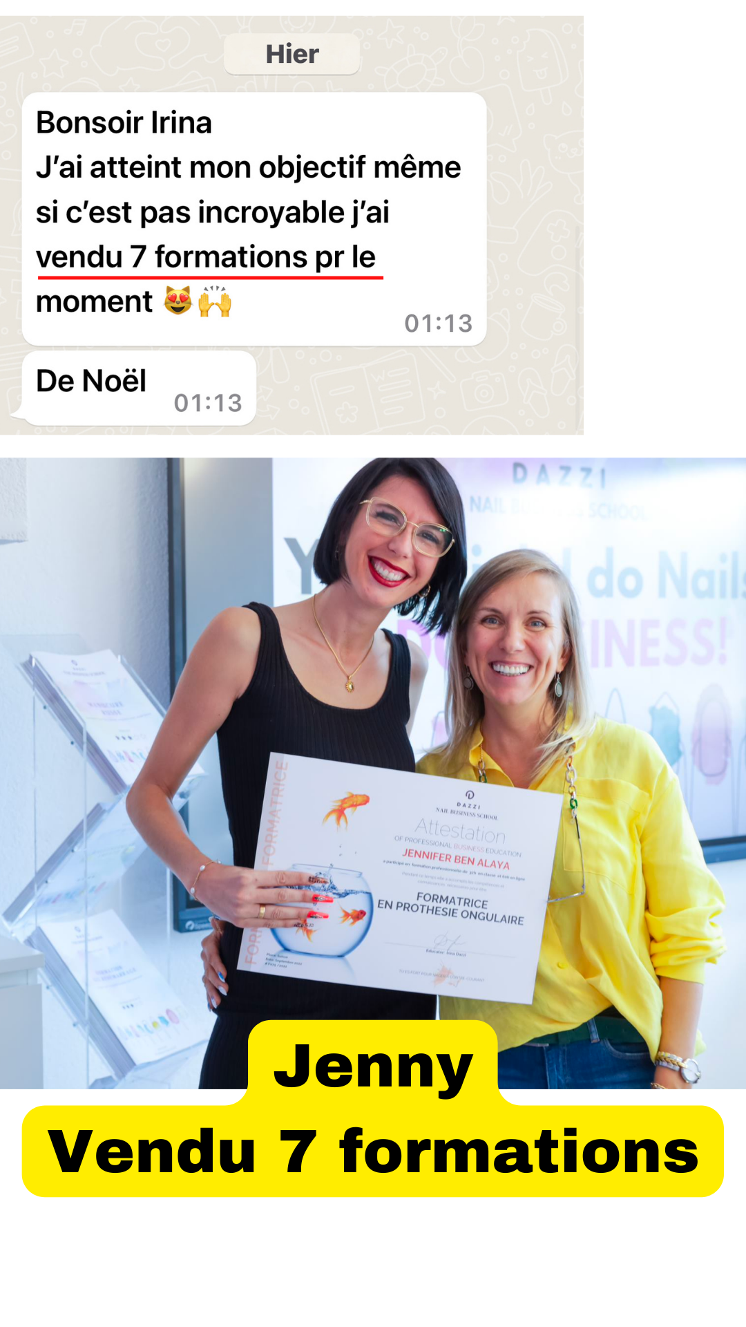 De la simple Nail Styliste à la nail styliste la plus chère de Cogniac avec son institut de 130 m2 et sa propre salle de formation pour 12 élèves !Elle a gagné 16.000 eur en 3 semaines après la formation Formatrice !